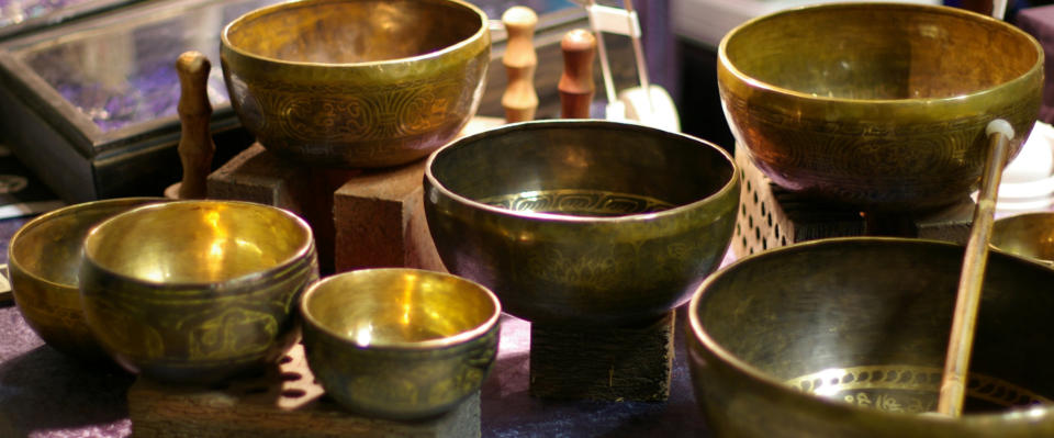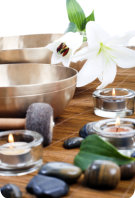 In addition to the energies crystals produce, our bodies respond well to sound energies. Sound waves produce specific vibrations in matter that they pass through and certain frequencies create vibrations that support healing. This is one of the reasons cats purr ... the frequency of the purr (40 Hz) has been proven to have pain relieving and healing effects.Singing bowls are a wonderful way to effect this healing with sound. Each bowl is tested to determine it’s specific note (and frequency) when it is created. Each note/frequency affects a unique part of the body, both on a physical and an energetic level. I have two sets of bowls available in my office allowing me to more closely match your body’s needs.I use Tibetan Singing Bowls in sessions as they have a mellower feel to them than the crystal bowls have. Each bowl is tuned to create a harmonious multi-toned “song” that aids the energetic healing process.If needed, one or more of my singing bowls will be incorporated into a session. The bowls I use are tuned to the pentatonic scale and correspond to the chakras:B = crown / 7th chakraA = third eye / 6th chakraG = throat / 5th chakraF = heart / 4th chakraE = solar plexus / 3rd chakraD = sacral / 2nd chakraC = root / 1st chakraUsing these bowls has an effect on the body similar to the chants used during some chakra meditations. The vibrations created in the body (both on an energetic level and physically) help to break up any blockages that are preventing the chakras from behaving as they should.I have used these bowls to aid in clearing the chakras as well as to add another level of healing to specific areas of the body during a session. The relaxation and comfort that the tones add to the healing session is nothing short of wonderful.I do have a set of crystal singing bowls in my office and after I’ve spent a bit more time playing around with those I have at home I do plan to start offering sound baths in my office … so stay tuned for that!